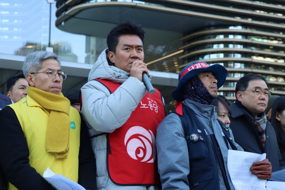 이날 기자회견에는 진보당·노동당·녹색당·정의당 등 진보정당 인사들이 함께했다. 진보당 정혜경 의원은 “10년 전 조선업이 어려웠을 때, 그 피해는 고스란히 하청노동자의 몫이었다”고 말했다. 당시 대우조선해양 등은 경영난을 이유로 임금을 30% 이상 삭감했다. 이어 “지난 22년간 대우조선에 직간접적으로 들어간 공적 자금만 13조 원에 달한다”며 “국민이 살린 기업을 한화가 가져갔는데 이 기업은 자기들 돈벌이에만 혈안”이라고 비판했다.