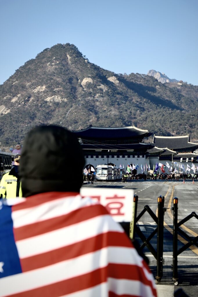 저마다 태극기와 성조기를 든 군중이 10차선 도로를 가득 메웠다. 지난 2월 8일 서울 광화문광장에서 열린 ‘탄핵 반대 국민대회’ 현장이다. 반국가 세력에 맞서 ‘자유민주주의’를 지켜야 한다는 사명감으로 모인 ‘애국 성도’ 3만여 명의 표정은 결연했다. 발언자가 “하나님께서 불 말과 불 병거(성경에서 신의 위력을 상징함)로 반국가 세력을 무너뜨릴 것”이라 외치자, 성도들은 일제히 “아멘”으로 화답했다. 그들 사이에는 ‘빨갱이는 죽여도 돼’라는 팻말을 든 남성 노인과 ‘STOP THE STEAL(부정선거 음모론을 주장하는 정치 구호)’ 피켓을 든 여성 청년도 있었다.