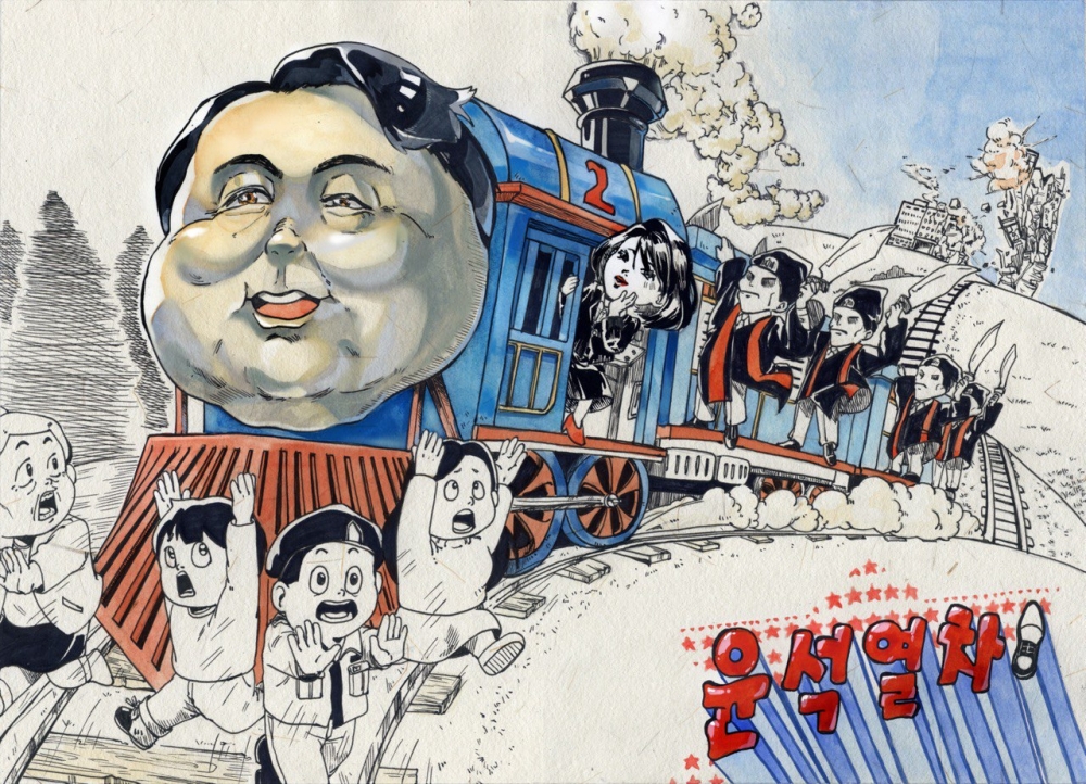 같은 해 10월, ‘윤석열차’라는 그림이 또 다른 검열의 제물이 됐다. 2022년 전국학생만화공모전에서 금상을 받은 만화 작품이 문제가 된 것이다. 윤석열의 얼굴을 한 기차가 철도 위의 사람들을 위협적으로 쫓아내며 달리는 그림이었다. 기차에는 김건희 씨와 법복을 입고 검을 든 검사들이 줄지어 올라타 있다. 문화체육관광부(문체부)에서는 ‘정치적 주제를 다룬 작품을 선정해 전시한 것은 학생의 창작 욕구를 고취하는 공모전의 취지에 어긋난다’는 이유로, 주최 측인 한국만화영상진흥원(진흥원)에 엄중 경고라는 입장을 표했다.