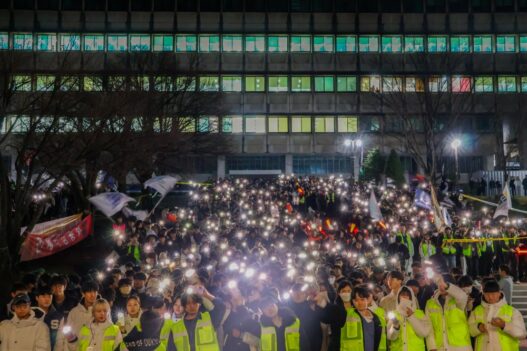 비상계엄 해제 이튿날인 지난 12월 5일, 서울대학교 총학생회는 윤석열의 비민주적 계엄령 선포에 대응해 전체학생총회(학생총회)를 소집했다. 중앙도서관 앞 아크로폴리스에 모인 학생들은 휴대폰 플래시를 머리 위로 흔들며 ‘다시 만난 세계’를 부르고, 흩날리는 깃발과 함께 ‘임을 위한 행진곡’을 제창하며 학생총회의 개회를 알렸다.
