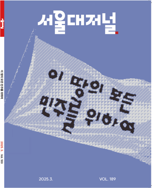 189호: 이 땅의 모든 민주를 위하여거리인터뷰독자편집위원회편집실에서 | 불바다 너머의 지평선을 바라보며세상에 눈뜨기 | 이것이 시민들의 저항이다커버스토리커버스토리 | 이 땅의 모든 민주를 위하여타임라인 | 윤석열의 시대를 돌아보다사유하는 군대, 비로소 완성되는 민주주의차별할 자유 외치는 사이비 자유민주주의우리의 취약성이 저항의 불씨가 되도록사회서울대저널, 묻다 | 분노를 노래하소서, 민중이여!학원세상에 눈뜨기 | 5년 만에, 다시 만난 학생총회초점 | 계엄, 그리고 서울대의 시간타임라인 | 타임라인으로 알아보는 서울대학교 학생사회 계엄 대응서울대 학생사회 보고서: 계엄 편윤석열의 ‘후배’들, 서울대의 현재를 말하다캠퍼스라이프 12.5 전체학생총회 자유발언, 어떻게 준비했나학생회 동향노동 동향문화세상에 눈뜨기 | 바이처럼 살자꾸나초점 | 검열을 넘어 광장의 노래로‘입틀막’ 뒤의 이야기, 이건 곧 당신의 일이 될 거랍니다민중의 목소리는 새롭게 돌아온다북새통 | 혁명 대신, 회전으로 시작하는 음악필름통 | 컷 사인조차 하나의 액션이 된다특집 미련 | 책 읽는 광장: 189호의 특집 미련세상에 눈뜨기 | 윤석열 퇴진과 함께 평등으로 전진수습 | 멀어도 너무 먼 탄핵오피니언기고 | 영국에서 마주한 대한민국의 계엄령: 무력감과 연대의 기록기고 | 지혜복의 투쟁은 미래에 대한 약속이다기자수첩 | 삶은 계속되고 여전히 막막하겠지만데스크칼럼 | 어쩌면 미래는 그곳에 있는지도 모른다