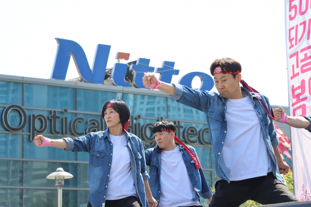 박정혜·소현숙 씨는 이에 맞서 2024년 1월 8일부터 구미공장 옥상에서 고공농성을 이어오고 있다. 이들의 요구는 니토덴코의 또 다른 자회사인 한국니토옵티칼 평택공장이 해고노동자 고용을 승계하라는 것이다. 한국니토옵티칼은 2023년 구미공장이 생산하던 물량을 넘겨받은 뒤 매출이 크게 성장했다. 2024년 이후 80여 명을 새로 채용하기도 했다. 정리해고자 전원을 고용 승계할 수 있는 여건이 마련됐음에도, 그렇게 하지 않은 셈이다.