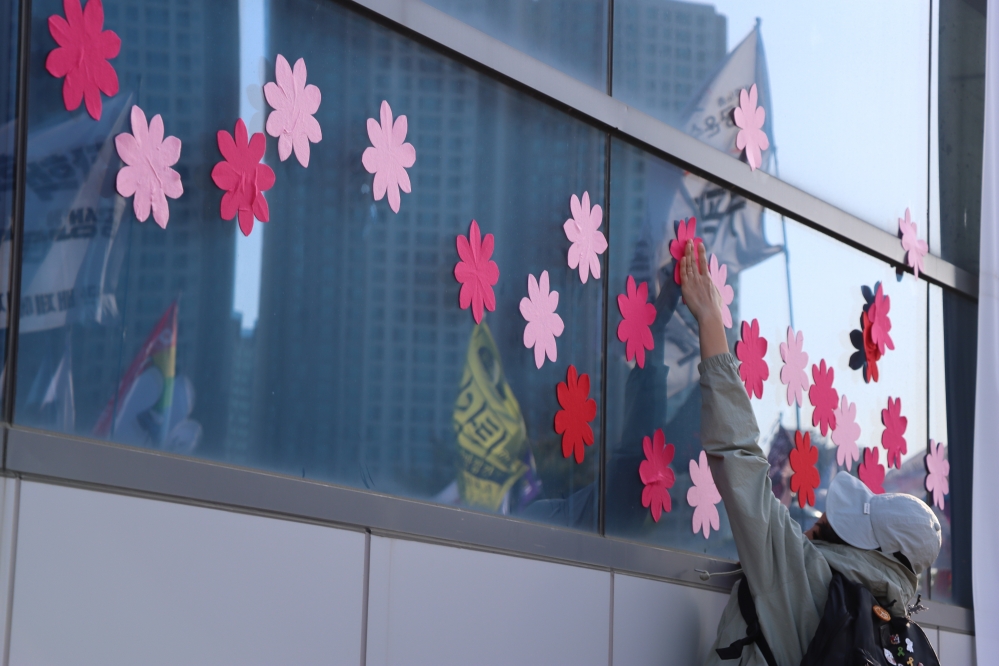 박정혜·소현숙 씨는 9미터 상공에서 화답했다. 박정혜 씨는 “이 싸움은 노동자의 존엄, 인간다운 삶을 위한 우리 모두의 싸움”이라며, “언젠가는 우리가 지켜온 순간들이 모여 별처럼 빛나는 날이 올 것”이라 말했다. 소현숙 씨는 “노동자를 자기 입맛대로 길들이고 부품처럼 갈아버리는 자본에 승리하는 그날까지 함께하자”고 외쳤다.