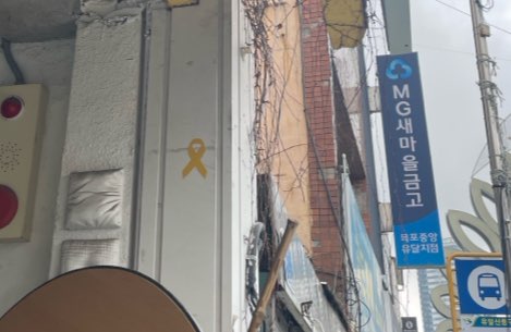 허무한 마음을 뒤로하고 시내로 향하는 버스를 탔는데 문 쪽에 뭔가 어른거렸다. 혹시나 하는 마음에 눈을 크게 떴다. 노란 리본이었다. 대문짝만한 리본이 면허증 옆, 버스 맨 앞에 떡하니 붙어있었다. 버스에 탄 승객 모두가 고개를 들면 바로 볼 수 있는 곳에 별다른 메시지 없이 리본만이 붙어있었다. 그것이 시작에 불과했다는 걸 목포 시내를 거닐며 알았다. 수석전시관 옆 계단에서, 헤어살롱 유리문 위에서 리본은 예고 없이 나타났다.