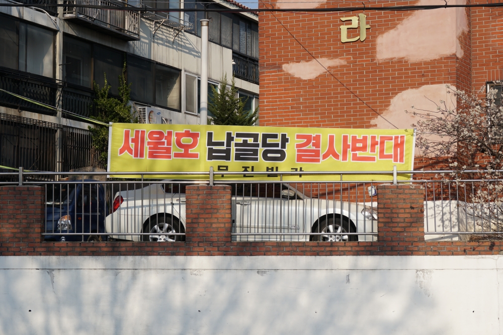2014년 침몰한 세월호는 정부가 기약 없이 약속을 미룬 탓에 2017년에야 심하게 훼손된 채 뭍으로 올라왔다. 그사이 유가족은 광화문광장에서 삭발식을 열고 인양을 요구했다. 빗물이 고인 땅 위를 걸을 때마다 발밑에서 찰박이는 소리가 났다. 펜스 근처엔 쓰레기가 방치돼 있었다. 정부는 2029년까지 추모 시설을 완공해 선체를 영구 보존하겠다고 했지만, 그때까지 배가 비바람을 견딜 수 있을지 의문이었다.