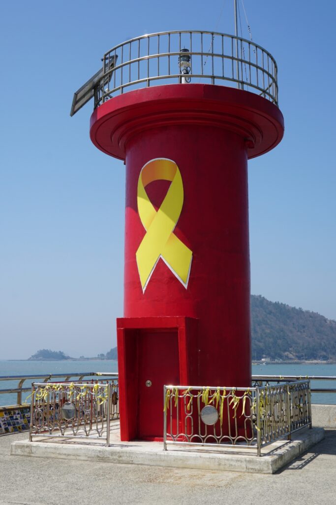 악몽을 꿔 이른 새벽 눈을 떴다. 하루에 한 번 운행하는 버스를 놓칠까 불안했던 탓이다. 팽목항에 가려면 목포에서 시외버스를 타고 진도로 이동해야 한다. 졸다 깨기를 반복하다 팽목항에 도착했다. 커다란 리본 조형물 아래엔 ‘그날의 기억! 책임! 약속!’이란 문구가 쓰여 있었다. 11년 전 이곳에서 약 30킬로미터 떨어진 바다에서 세월호가 침몰했다. 팽목항은 희생자들의 유해가 수습되고, 참사 이후 미수습자 가족들이 오랜 기간 머무른 곳이다. 저 멀리 ‘기다림의 등대’와 ‘하늘나라 우체통’이 보였다. 가까이 가 보니 자물쇠는 녹슬었고, 리본은 올이 다 풀린지 오래였다.