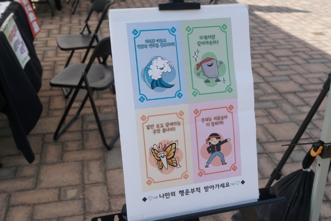 행사에 함께한 단위들은 다채로운 프로그램을 기획해 참여자들이 각 단체의 활동에 가볍게 다가갈 수 있도록 돕는다. 비서공은 ‘호호 체육관’*을 소개하는 체험형 활동과 학내 휴게실 실태를 살펴보는 활동을, 달은 참여자의 성향에 맞는 페미니즘 학자를 찾는 테스트를 마련했다. 골패는 민중가요 부적을 제작해 배부했고, 빗소리는 노동 관련 퀴즈와 릴레이 소설 쓰기를 통해 참여를 이끌어냈다. 디스에이블 부스에서는 그간 발간한 문집을 소개하고 배부하는 활동이 진행됐다. 이처럼 각 단체의 특성과 활동 방향을 엿볼 수 있는 다양한 프로그램들이 행사 전반에 걸쳐 이뤄진다.