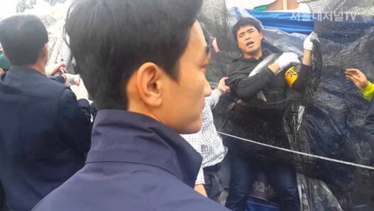 [현장스케치] 한남운수 차고지 앞 농성장 철거 집행