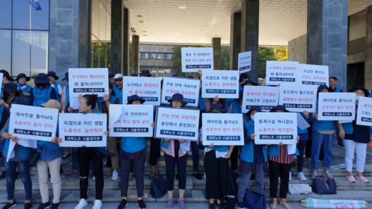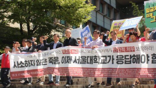 “본부는 청소노동자 사망에 대해 사과하고 노동자 처우개선에 힘써야”