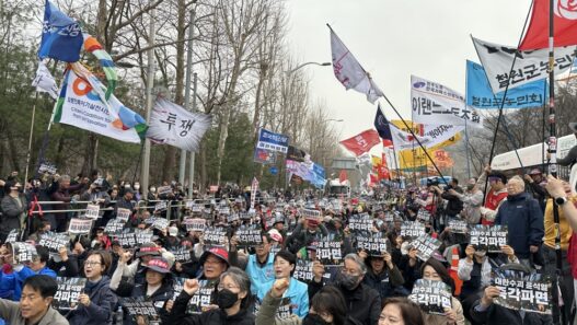 윤석열 파면 2차 트랙터 행진, 다시 경찰에 가로막혀