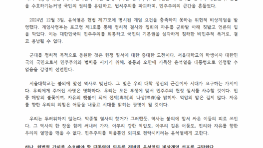 서울대 총학, 윤석열 비상계엄 규탄하는 12.5 전체학생총회 소집