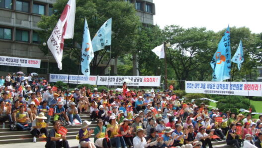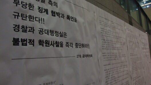 떠나는 법인화 버스에 손 흔드는 학생사회